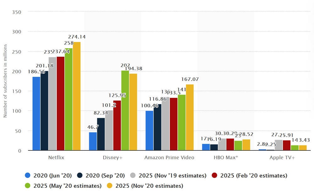 Clearly, AMC isn’t happy with Warner’s plan, but so far the reaction hasn't included an ultimatum that involves a boycott of Warner's 2021 films. But I give it a 50/50 chance that all the big theater chains refuse to show any of its 2021 movies. I love how Aron refers to HBO Max as Warner’s “start-up”. I detect patronizing sarcasm implying HBO Max is Warner’s little tech start-up sideshow. But the analogy is an apt one, as the entertainment is virtually becoming another segment of tech. When it comes to tech-platforms, it's winner-takes-all in any given market as they tend only to have room for one winner that dominates its market. Second prize in streaming video on-demand is likely to be a set of steak knives. Each of the big studio-backed streaming service needs to be the must have, or face having to license its productions to the winner.