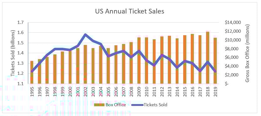 Despite steady declines in ticket sales since 2002, the industry has managed to just hang on by bringing innovations to the movies. Those of us who have been going to theaters for many years have noticed the seats get more comfortable, vast improvements in audio with standardized surround-sound formats, brighter, digital picture quality and when was the last time you had to sit through a projector malfunction during a showing? Kids these days have no idea! In recent years we’ve even been able to enjoy a craft beer while watching movies without even having to sneak it into the theater. (Not that I've ever done that of course :) )
