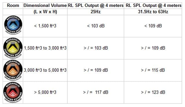 While output isn’t the only measure of a subwoofer’s quality, it’s undoubtedly one of the more important metrics by which we judge a subwoofer. To aid in that assessment, Audioholics has developed a subwoofer room size rating protocol with ratings for small (<1,500 cubic feet), medium (1,500-3,000 cubic feet), large (3,000-5,000 cubic feet), and extreme spaces (>5,000 cubic feet). Every subwoofer we review gets measured according to the Consumer Electronics Association (CEA) 2010 standard, and the results are then used to assign a room size rating. The aforementioned SVS PB13-Ultra and Rythmik FV15HP are both Bassaholic Extreme certified subwoofers, which have sufficient output to handle rooms beyond 5,000 cubic feet in size. Meanwhile, the compact SVS SB-2000 was rated Bassaholic Medium certified, meaning it can deliver satisfactory amounts of bass and low end extension for spaces up to 3,000 cubic feet in size. You can find a summary of all subwoofers tested by Audioholics attached to the rating protocol article.