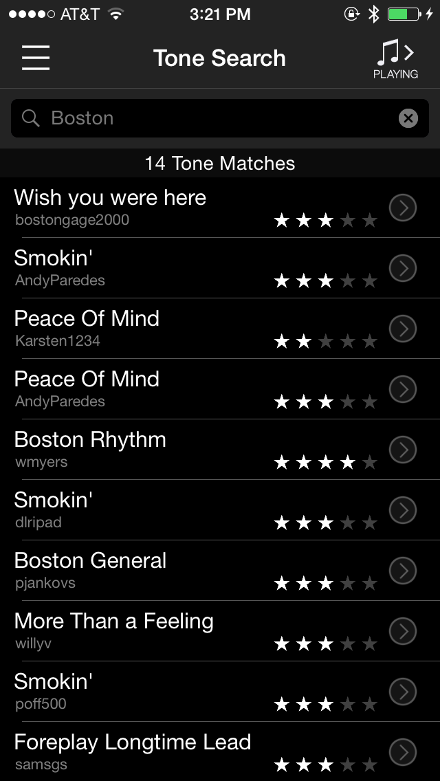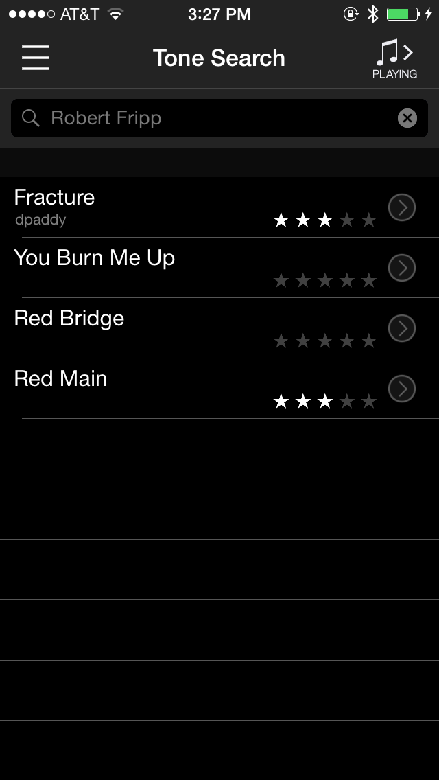 But what if you don’t have songs in your music library and you still want to match the guitar? Not a problem. The app has a search feature that allows you to type in a musician’s name, song name, band name or music genre. My searches included Journey, Boston, Stevie Ray Vaughn, Pat Metheny, Jazz and tons of others. In all cases, the results were amazing as so many options were available to choose from. I also did a search for Porcupine Dream, found a match, fired up Anesthetize from my music library and started playing. Not only was I floored at how closely it matched, but my wife commented that she had no idea I was playing along with the song.