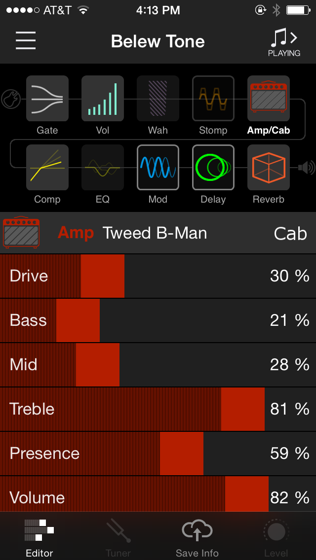 I really wanted to give the AMPLIFi Remote app a test spin with my music library, so I selected what I believed to be music that was a bit obscure from mainstream. King Crimson’s Elephant Talk seemed to do the trick. When loading the song into the app, there’s a section near the bottom called “Similar Tones.” This part of the app searches the Line 6 database for user configurations that closely match the guitarist’s tone. In this case, there were four such settings titled Red Main, Belew Tone, Fracture and Red Bridge. Highlighting one of these tones with your finger automatically reprograms the model of the guitar tone including the amp head, cabinet, tone controls, gain, volume and effects. I first selected the Belew Tone and was stunned to find how quickly and accurately it simulated Adrian Belew’s famous chorus with delay sound. I then went on to another somewhat obscure blues musician named Joe Bonamassa and within seconds was able to pull up four users suggested settings including Bonamassa Plexi Clean, Zap’s Bonamassa, Blues Lead and Ballad of John Henry – Lead. In all instances, the settings display a user star rating/ranking. But perhaps the best part of this feature is the fact that you can create your own settings, name them and upload them into the ever growing Line 6 database. This is something that I would never have imagined existed for a guitar player and without a doubt, it’s a quantum leap forward in technology that every musician at some level will enjoy.