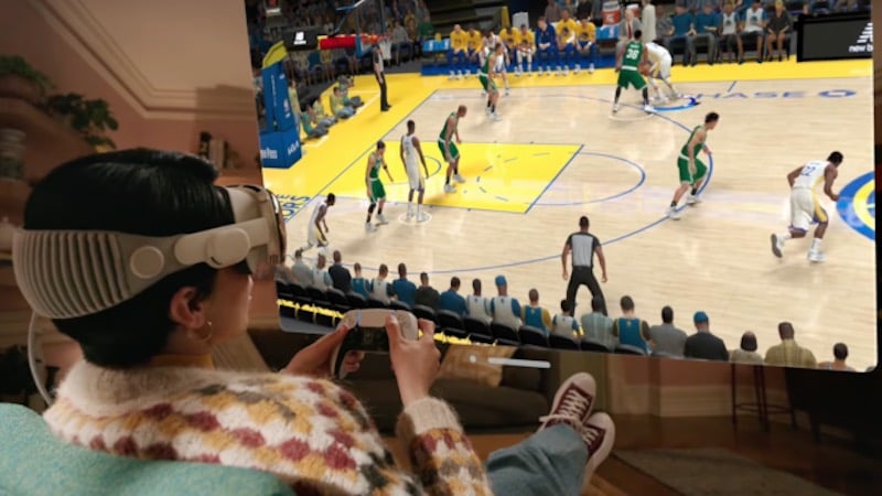 Unfortunately, at this point in the product's evolution Vision Pro is not the gaming platform or VR gamers are looking for. The Oculus seems to maintain an edge here. The Vision Pro demo included a shot of someone playing the mobile version of NBA 2K ‘23 on a flat, 2D virtual screen with what looks like a PS5 controller as the voice-over says: