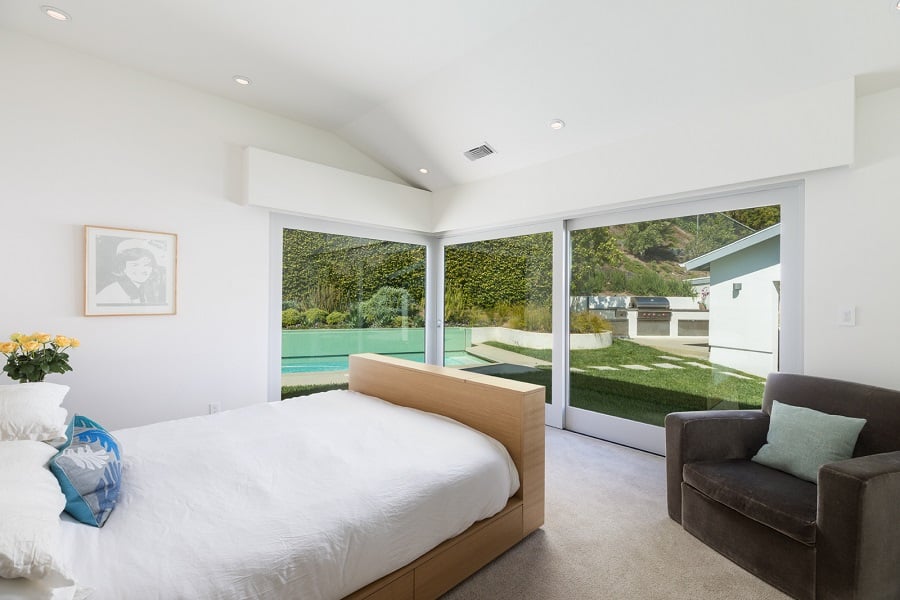 My current home has the main living space on the top floor, with three main bedrooms on the bottom floor. The windows to the west get the full sunshine treatment, as the sun sets over Topanga Canyon and Malibu, thus my house gets hammered with sun, light, and ultimately heat until as late as 8:30 PM in the summer. The new translucent shades are programmed to block the western light in the afternoons, and do a remarkable job of keeping the upstairs area cooler when it is sunny. We’ve noticed needing to set the Crestron thermostat at a higher temperature to be comfortable now. That is a very good sign that we won’t need to use as much energy to keep our home at a livable temperature, and that, paired with all new HVAC units last year, should save us some serious money. All new windows and doors would be even better, but that’s an investment that I am not ready to make any time soon in this house, as we need a new master bathroom and a kitchen cabinet redo first.
