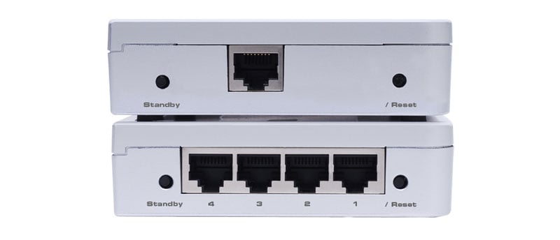 The solution is designed for simplicity. The sender unit connects your active DSL, cable or satellite Ethernet router into any standard wall-jack power outlet. The receiver unit is connected to the power outlet in another room where you'll be working. Once both units are powered, four Ethernet ports on the receiver unit will be active.