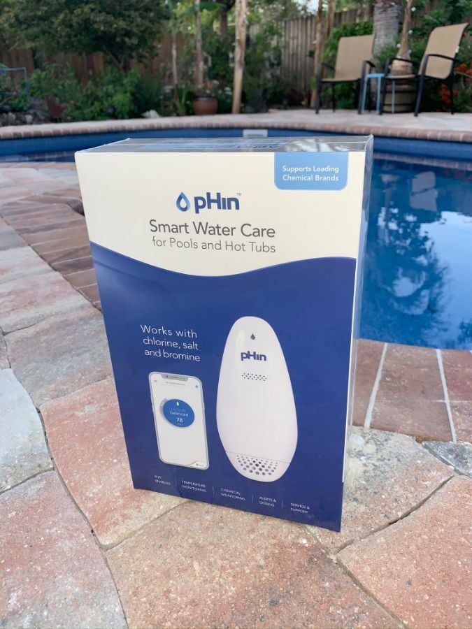 I was sent the new and improved model of the pHin (pronounced “fin”) which is just being released by Hayward Industries. The newest model includes a refreshed app experience and an expanded database of compatible chemicals that you can scan or select to be ready for pickup at your neighborhood pool store.