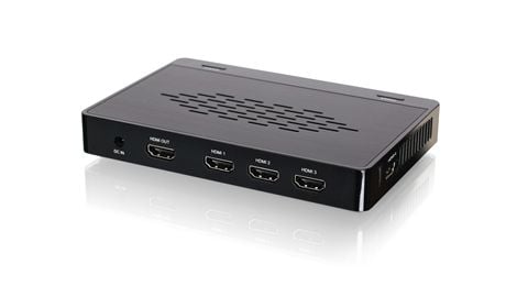- 4-port switch connects and switches between 4 HDMI® devices on 1 3DTV or 3D-ready projector