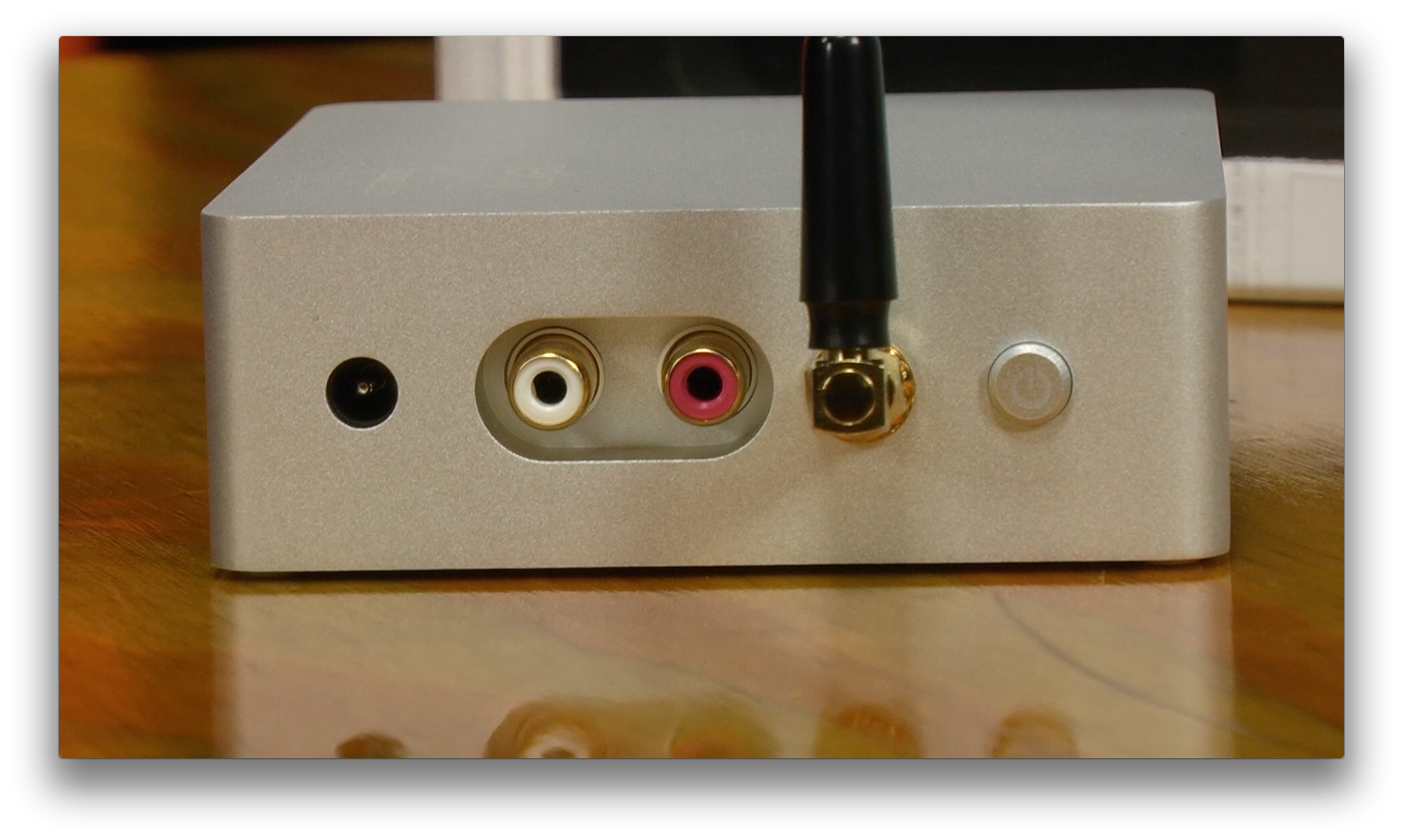 Can you use the words "Bluetooth" and "high-quality audio" in the same sentence? That's what we'll explore today, and that's what Mass Fidelity is going after with their new Relay Hi-Fi Wireless Receiver. This $249 Bluetooth receiver is a very simplistic-looking product. In fact, it's milled out of a solid block of aluminum and it has these really nice rounded corners that makes it look like something Apple's chief designer Jony Ive would approve of. The receiver integrates well with any hi-fi audio system. I mean ANY system. You just connect the stereo analogue outputs on the back to your AV receiver or preamp and you're ready to go. It's nearly foolproof and aside form a power button and the stubby antenna on back there's nothing else to make it confusing or difficult.