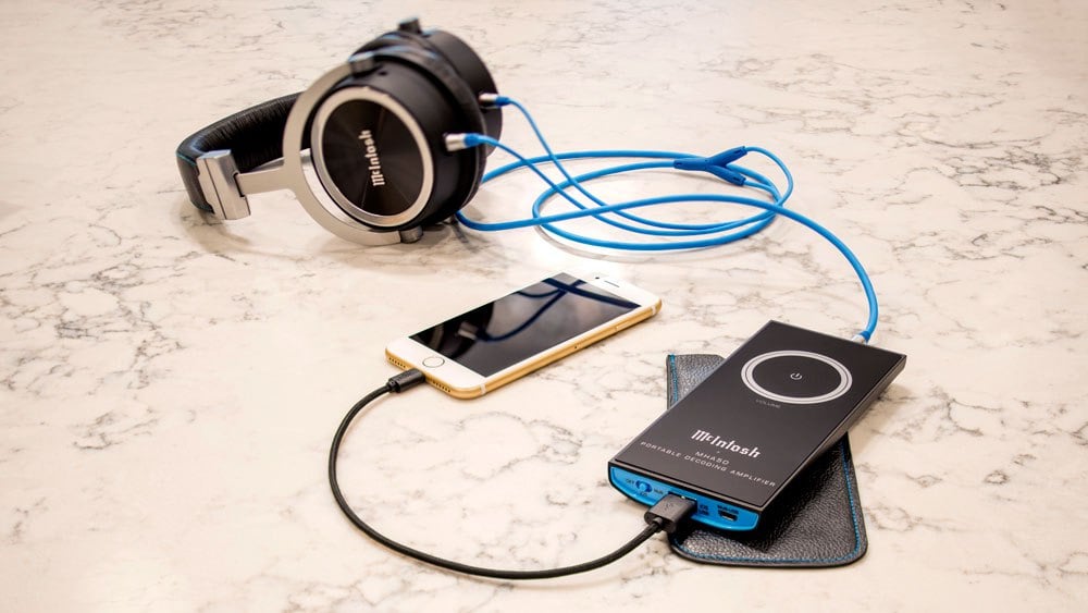 So, now McIntosh fans that have sprung for the brand’s recent MHP1000 headphones have even more reason to get excited about taking that McIntosh sound on the go. What could be better than listening to McIntosh MHP1000 headphones? Really listening to your McIntosh MHP1000 headphones because they’re plugged into a MHA50 headphone amplifier. Now you’re rocking complete with matching blue-accented gear.