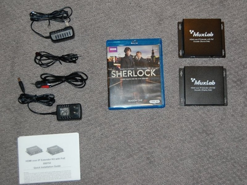 Frankly, Sherlock looks the same to my eye whether he’s passed through MuxLab’s HDMI extender kit (bottom right) or just an 8’ Blue Jeans Series-FE HDMI cable.