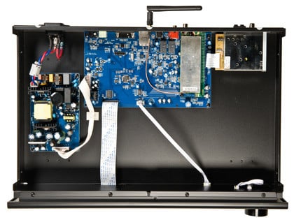 insideThere are a few concerns with the NAD C 446. First, it seems like if you are going to include an FM/AM tuner, there should be an HD radio tuner on board. Last.fm is a perfectly fine service but where is the support for Pandora or Rhapsody or any of the others? Having to pay for an aftermarket program for iDevice support seems a bit odd considering the price and prevalence of such devices. Also, for a company like NAD that is focused on audio quality, reports that it tops out at 24-bit/48kHz resolution (in spite of the claims of a 24-bit/192khz DAC) is disappointing. When you see the inside of the C 446 the first question you'll ask yourself is why they couldn't have found a place for that in their receivers. That's a lot of empty space in an $800 box.