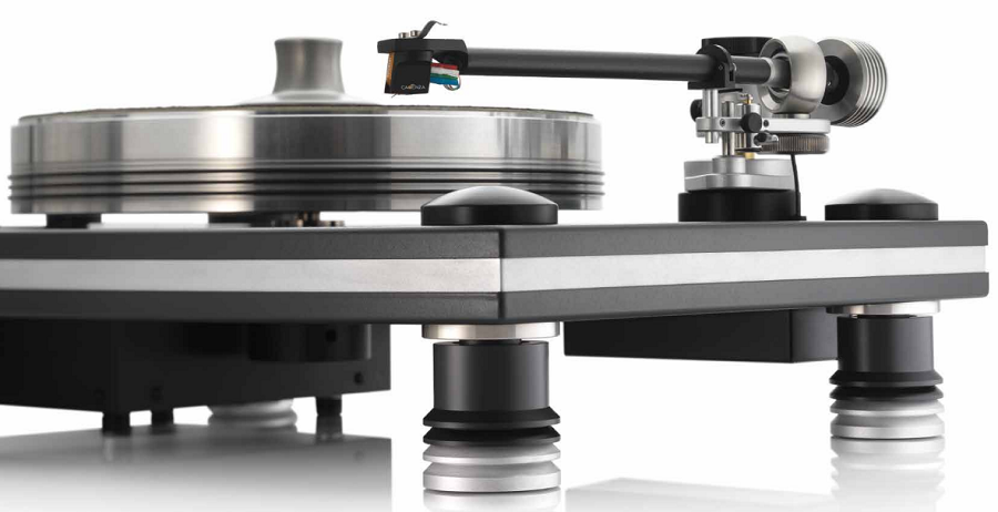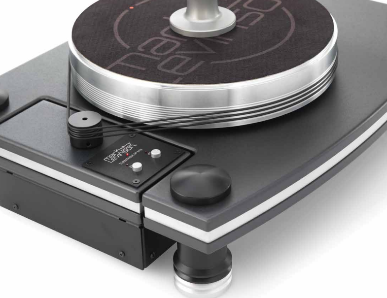 The № 515 is based on a highly damped vinyl-wrapped composite and aluminum sandwich main chassis. The chassis is supported by machined Delrin and Aluminum Mark Levinson feet with a vibration-damping polymer core. The solid aluminum platter rotates on an inverted bearing, which employs a hardened stainless steel shaft spinning in a phosphor bronze bushing for maximum rotational accuracy.
