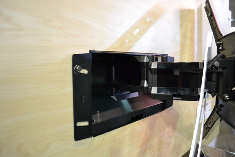 At CEDIA 2014, OmniMount showcased the OE120IW, an in-wall TV mount solution duo with in-wall box and a pre-assembled full motion wall mount. By supplying both the wall mount and in-wall box, the OE120IW eliminates the hassle of matching an in-wall box with a compatible mount.