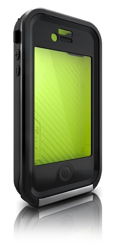 The Armor Series case features a waterproof thermoplastic shell and is made with a precision fit that matches your iPhone 4/4S to within an accuracy of 0.003". The bottom latch is made from medical-grade stainless steel and flips open to provide access to the docking connector. The headphone jack, speakers and mic are all completely waterproof and Otterbox says this is their "toughest case ever". We believe it.