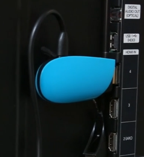 This is how it works: The PLAiR is connected to a free HDMI port. There is a small mini-USB port on the stick which allows you to plug a cable into an adapter that plugs into the wall. HDMI is non-powered so the PLAiR has to get power from somewhere. Switch to that HDMI input on your display. This will let you know that the PLAiR is ready for the next step.