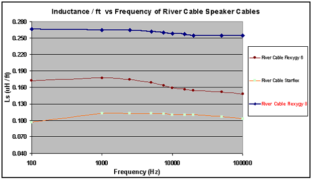 Inductance was well within their spec of .300uH/ft and reasonably low enough, though not stellar, for use in high fidelity audio systems. The Starflex cable is their best performing cable in this aspect. Though according to River Cable, users requiring lower inductance cable can order the Flexygy 8 in a different terminating scheme for lower inductance but higher capacitance.