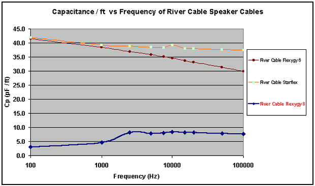 River Cable actually touts flat cables as being the optimal geometry for minimizing capacitance. In actuality, conventional flat cables sandwich their conductors closely together which dramatically increases capacitance. I commend River Cable for producing a series of flat esoteric cables with well-controlled capacitance and reasonably low inductance. As previously mentioned, some esoteric vendors opt to sandwich the (+) and (-) conductors right on top of each other with minimal spacing. While this produces the lowest inductance possible, it comes at a penalty of ultra high capacitance, which can wreck havoc on marginally stable esoteric tube amplifiers when cables become excessively long without proper zobel compensation. High capacitance cables can also cause frequency peaking on systems resulting in a 舠 bright 舡 sonic signature. I consider speaker cables below 50pF/ft of capacitance low enough to NOT be an issue in real world applications.
