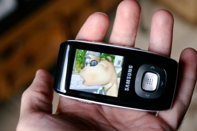For video, the T9 supports MPEG4 files that the included Samsung Multimedia Software (for your PC) will transcode to play at the optimal frame size/rate. The video resolution is 208x176, and the frame rate is 15fps. Videos are presented in horizontal aspect, which was cool.
