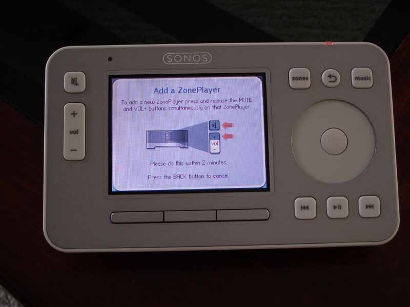- Press the 'Mute' and 'Volume Up' buttons on the primary ZonePlayer to assign your LCD Controller to your network.