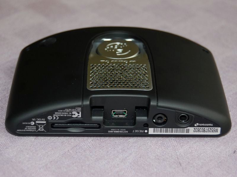 Getting back to the design of the unit, TomTom has incorporated some really nice features. Most of the connectors are located on the bottom of the unit, and the car adapter uses a USB plug connector, which cuts down on the number of different jacks. There is a TomTom connector, which is used for the optional RDS-TMC Traffic Receiver, and an audio out connector. There is also an SD card slot, which can be used for optional maps. There is also a recessed reset button, which I am happy to say I never had to use during my evaluation period. Also on the rear of the unit in the top left corner, there is an external antenna connector.