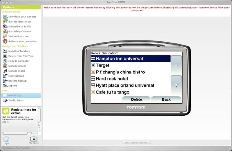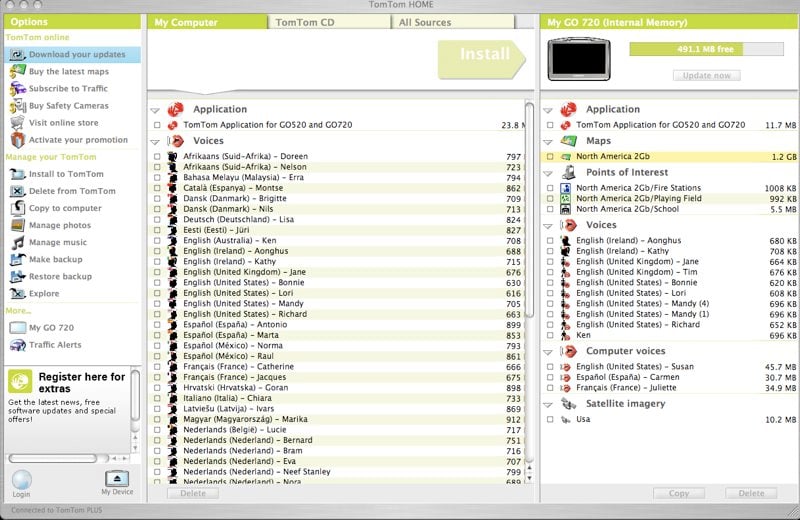 The included TomTom HOME software installed without problems on my MacBook Pro and was very easy to understand. I quickly downloaded the latest updates, and then updated the GO 720. There are plenty of options in the software allowing you to purchase subscriptions to weather & traffic information, but my favorite was one for people in Europe - the "Buy Safety Cameras" option. See the photo for details on this - you have to love technology vs technology!