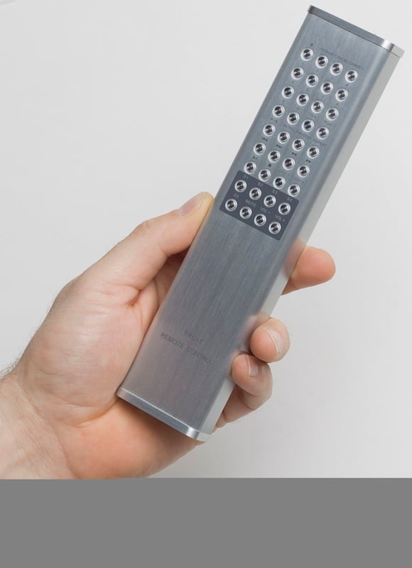 The remote demands a little attention of its own. We've seen a lot of high end gear with industrial remotes but we think the Vincent Audio remote be one of the best examples of this. Apparently, Vincent Audio customers only listen to music in well lit rooms. The remote is not small (which is fine as it makes it harder to lose), constructed out of aluminum, and has about a hundred small, uniformly sized buttons on only one half of the face. Even if all of those aluminum buttons are ring lit, in a dark room it will be impossible to see the labels on them. Their uniformity and size (extremely small) means that you'll need to memorize the exact row/column location of your favorite function. Maybe you're supposed to operate it by the light of the tubes?