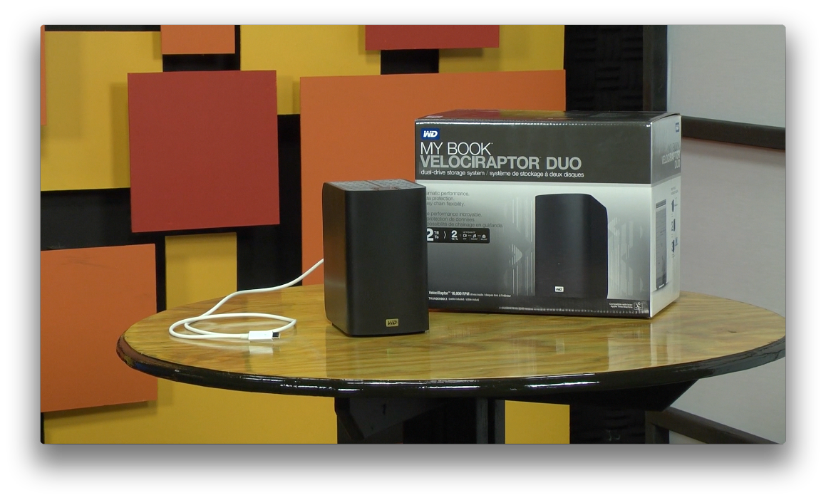 As I've mentioned before, I don't just stand in front of the camera in these videos, I also edit them. So you can imagine I have a particular fascination with new hard drive technology. When Western Digital (WD) proposed sending us their new My Book VelociRaptor Duo...Well, I first asked how it differed from their Thunderbolt Duo. The answer was that it actually has a pair of 10,000 RPM VelociRaptor drives which deliver 2TB of storage in a RAID 0 or 1 configuration (striped or mirrored). The drives are connected internally via a SATA 6Gb/s interface. And you can access the internals easily just by lifting the top of the chassis, twisting the cage lock and lifting out the drives individually.