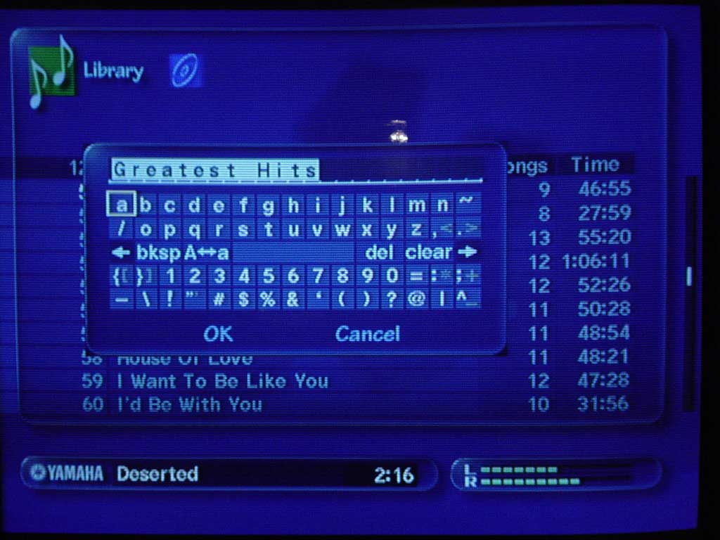 You can delete PCM audio from either an entire album, an entire artist, or just a single track. All you do is navigate to the particular level that you want to delete and bring up the MusicCAST sub-menu by hitting the SUB MENU button on the remote. At this point, hitting "Delete" will bring up a dialogue box that will allow you to either delete ALL audio from the selection, or allow you to check a box so that you merely remove the PCM digital audio. Remember, for each album for which you delete PCM audio, you regain approximately 600+ MB. Deleting PCM audio allows you to retain the MP3 audio for playback on either the client or server. I have to admit, the implementation of this feature was pretty ingenious. It could have been a tremendous pain or limitation if you were required to delete one song at a time, but instead, MusicCAST allows to to utilize the flexibility of the database structure to delete songs as well as listen to them.