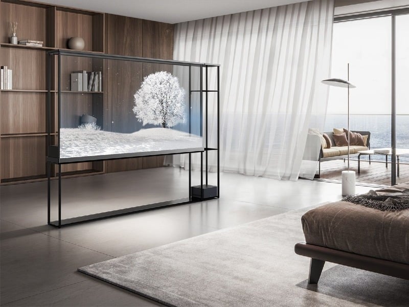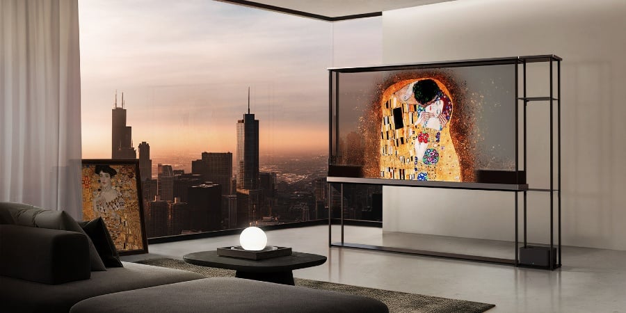 LG says that the OLED T “unlocks a world of near-limitless potential, giving users the unprecedented freedom to meticulously curate their living spaces.” What does that mean, exactly? At first glance, it might sound like marketing nonsense, but I think the folks at LG are onto something with the idea that a transparent TV brings with it many new possibilities, starting with where it can be placed in a room. Since the advent of plasma TVs in the late 1990s, we’ve been mounting TVs to our walls, or at least placing them up against a wall to take advantage of their slim form-factor. This makes perfect sense, especially as TVs have grown larger and larger over the years. Placing an ordinary 77-inch TV anywhere but against a wall would look pretty strange in most rooms. But a transparent TV removes this constraint, and could easily be placed in the middle of a room, or even in front of a window, without blocking the view or dominating the space with a big black screen. (At my girlfriend’s place in Seattle, layout restrictions dictate the placement of our OLED TV, which unfortunately blocks all of the windows along the front wall of the living room. A transparent TV would be a game-changer in our space.) For years, AV enthusiasts have been at odds with the interior designers in our lives, whether that role is filled by a spouse or a design professional. No matter how well a normal TV performs, it’s a big black screen when it’s turned off. Samsung has approached this problem with its “The Frame” TV, which hangs on the wall and looks like a framed piece of art when not playing content. But the OLED T takes this concept of “TV as art object” to another level entirely. Practically invisible when turned turned off, it can blend into its environment and go mostly unnoticed, or it can be used to display still or moving art content that appears to float in mid-air. The see-through screen also allows light from nearby windows to pass through unobstructed, making the room feel like a larger and more open space.