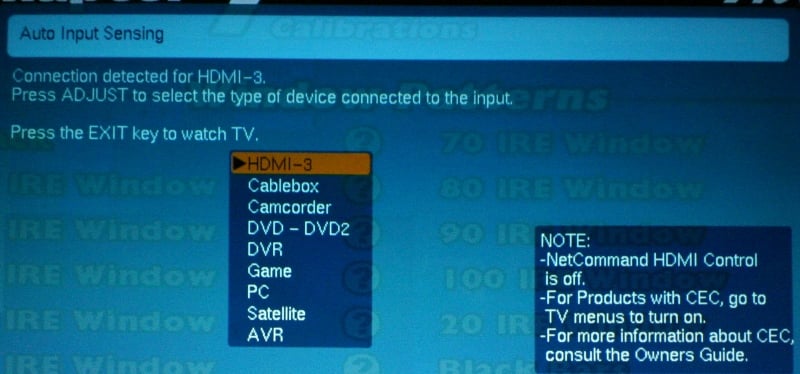 The input sensing of the WD-73735 really took just about all the stress out of setting up the display. The Denon AVR-2307CI didn't seem to want to play nice with the display which caused me to have to turn the display, receiver, DVD player, and cable box on and off until something finally synced up via HDMI. Once that happened, all the other sources worked as well. If I connected the source directly to the unit, I didn't have that problem. I figured out eventually that if I left the receiver on, I didn't have the problem any longer. Irritating, yes, but I blame HDMI and not Mitsubishi.