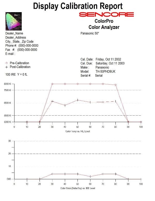 I used the Sencore Color Pro 5000 (CP5000) to calibrate the display. As you can see, once
