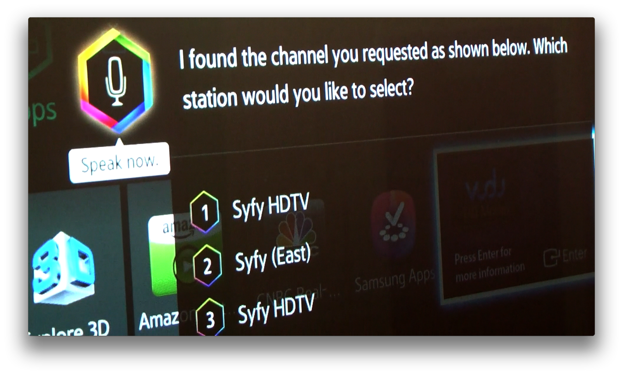 This TV has the same motion and voice control as the Samsung UN55ES8000F we reviewed late last year...Actually that's not true. The motion control seems more refined. I had less issues getting it to recognize my hand and activate the various controls. And the voice control now uses natural language. You can now say such things as "Hi, TV. I want to watch Star Trek." and it will pull up all available Star Trek shows and movies for you to watch. You can also ask the TV for general recommendations. For example: "Show me Sci-Fi movies." Yes, the Samsung now has natural language voice recognition. It's very cool and a feature that should actually get a lot of use. The bottom line is that the new TV's interface is a far cry from the constraints of previous Samsung Smart TV systems.