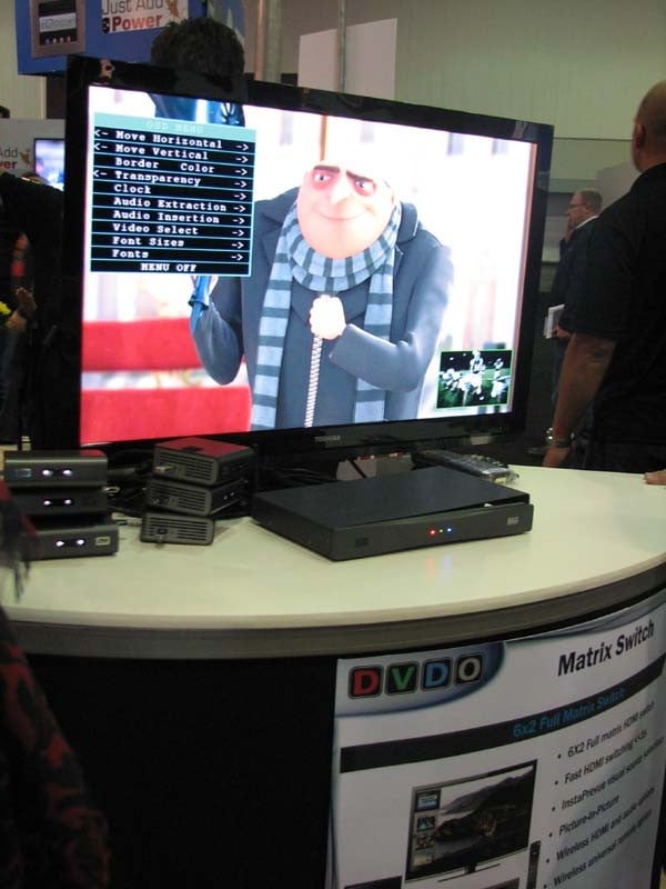 DVDO was at CEDIA demoing its first product to include InstaPrevue - the new 6x2 Full Matrix HDMI Switch. This has the fast (<1 second) InstaPrevue switching embedded, picture-in-picture, wireless HDMI and audio options and a wireless universal remote control option as well.