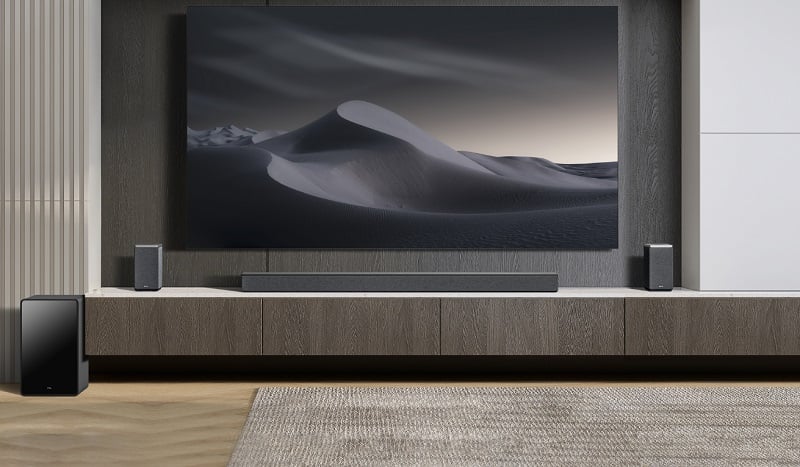 TCL's Q Class Dolby Atmos sound bar is said to deliver “powerful performance that TCL is known for, wrapped in an elegant design”. The Q75H is a 5.1.2 sound bar that allows you to experience Dolby Atmos and DTS:X with built-in side surround speakers. TCL's Q85H is a 7.1.4 sound bar that delivers an “enveloping” home theater experience by adding wireless rear speakers, which also incorporate rear Dolby Atmos up-firing drivers and Ray-Danz acoustic wave-guide reflectors.