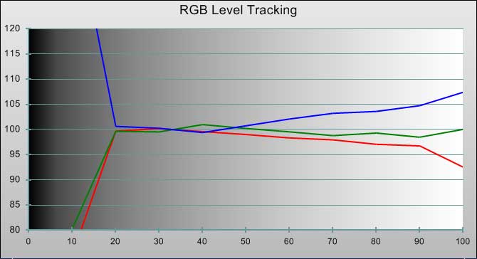 ANSI contrast came in at 935:1 with Color Temp set to "Normal" and with Contrast and Brightness correctly set for night time viewing. The backlight was also set to 20. We found that adjusting the backlight really didn't do much to effect the contrast ratio, it merely raised the black level reads while simultaneously raising the peak white level measurement. As a result, feel free to crank up the backlight to 100 during the day and then bring it all the way down to 0 at night. Even in Vivid mode the ANSI Contrast measured just 1040:1, though the peak white level was much higher, allowing for easier viewing in daylight hours or in rooms where light control is not practical or possible. To achieve the correct levels we set Brightness to 51 and Contrast to 51 and set Color Temp to Normal. Color temperature was best in Movie mode, with it coming in almost right on D65. Vivid, Game, and the 4 Sports modes all had color temperatures in excess of 10000K. Standard mode was around 6700K and provided only a slightly more visible picture than Movie mode.