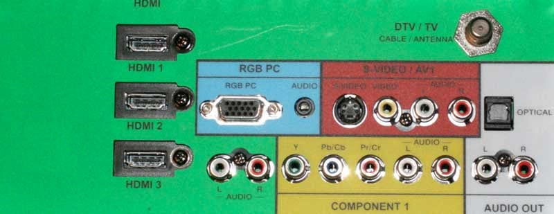 The presence of three HDMI inputs on back is a welcome addition and shows that Vizio is listening to somebody as the former model had two inputs on the side. The remaining HDMI side input is extremely practical, especially if you plan to connect your laptop to your TV on occasion for use as a home theater PC or media streaming device for Netflix or Hulu. In addition to HDMI, Vizio includes two component video inputs (one on the side), an HD15/VGA/RGB PC input, and a composite/S-video input. All of the analogue video inputs have an associated stereo audio input (RCA for most and stereo mini connection for the 15-pin PC connection).