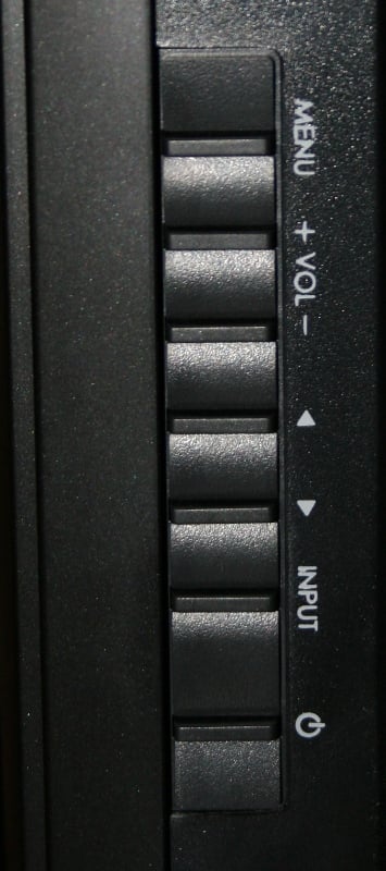 There are controls for the unit on the side including Power, Volume, Channel, Source, and a Menu button. There is an odd panel on the front just below the LED that looks like it should pop open for controls or inputs - it doesn't. The side controls are very responsive and easy to locate and use even in a dark room. The power cable is detachable and on the side with the HDMI inputs. I've read that others have had problems with this display in that it sometimes "crashes" and won't come back on unless you unplug it and plug it back in. I've had that problem with the older Westinghouse but not this unit. A detachable power cord makes this a very easy proposition. Honestly, there is something about this display that makes it look larger than the claimed 42".