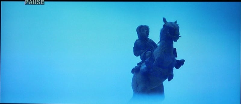 Here are a few more pics I snapped thinking that I would use them in the review. At this point, it seems like it is just going to be more bashing so I'll just throw up a few. The dark, grainy blob is the arrows coming in at the end of LOTR: The Two Towers. The second is from the same movie and the kid's face looks fine but the figure in the foreground has a lot of noise. This is pretty typical of the performance with the characters looking OK but the backgrounds looking hazy and full of artifacts. The last two pictures are from Alfred Hitchcock's Spellbound. While many of the scenes are shot sort of soft, notice the moiré on Gregory Peck's jacket and how undefined Ingrid Bergman's white coat is compared to the white window behind her. Overall, SD performance lacked the crispness I've seen with other displays.
