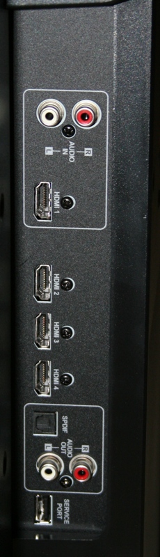 The stand comes attached (I prefer this though it really isn't a mark for or against the unit) and it is a bit heavy at nearly 10 pounds. As Westinghouse displays are wont, the inputs are up the sides of the center post with the HDMI inputs on one side and just about everything else on the other. The TX-42F430S has a whopping four HDMI inputs which is phenomenal at this price point. There is absolutely no reason why you would need more. Also included are a pair of component inputs, a shared S-video/composite input, and a VGA (HD15) input for you computer lovers. Noticeably absent is the (quickly becoming standard) USB port for displaying pictures and home movies though again, not really a strike against it.