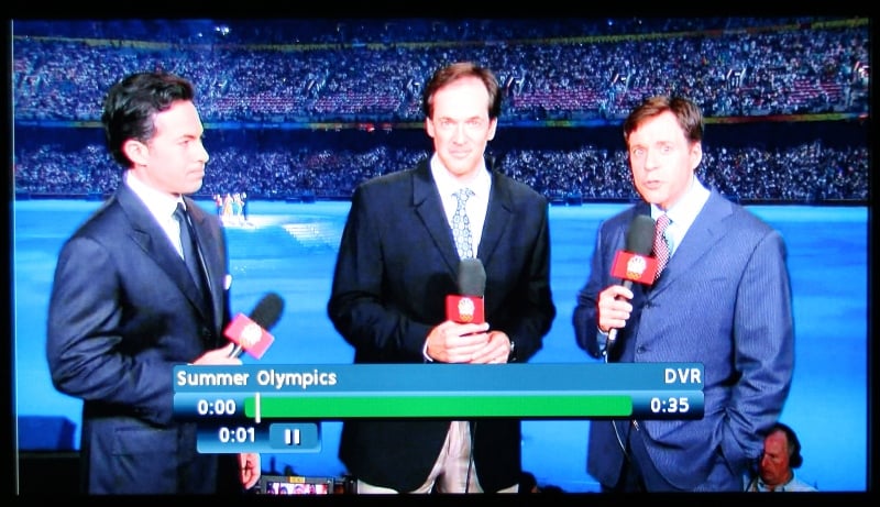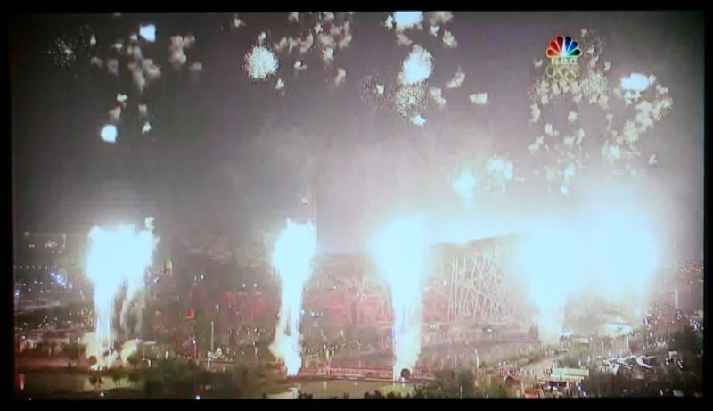 We'd have to wonder if Westinghouse borrowed too much from its PC monitor division in making these displays. The colors were well saturated and static pictures looked OK, but any motion was a mess of blurs. The closing ceremony was held at night and the amount of artifacting was legion and banding was evident near every light source. Notice the artifacting in the Olympics graphic in the last pic.