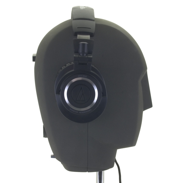 The ATH-M50s' are constructed of high quality plastic with chrome highlights. There headband and ear covers are padded and covered in pleather. The cans sit easily over the ears and are held securely. Some might say a bit too securely. I don't have the largest head on the planet (thankfully head size is not proportional with ego) but I felt when I first put on the ATH-M50s' that they were a little snug. Honestly, I was worried that they'd give me a headache after a while. During my testing I didn't find this to be the case but if you feel you have a large head (or larger than mine) you should take this into account. For reference, I measured my head and I wear a 7-1/2 to 7-3/8 hat.
