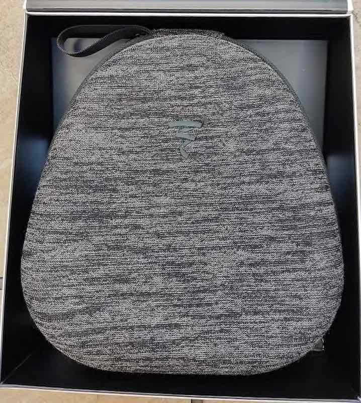 After opening the box for the first time, Bathys comes zipped inside its included fabric-wrapped, stiff-shell carrying case. It's a smaller, flatter case than those used for Focal's high-end line, thanks to Bathys swivel earcups that let it lie flat. The swivelling hinge above the yoke is a first for Focal's high-end design. The case is a low-profile 2-¾” deep for easier packing into a crowded carry-on bag or suitcase for travel. Complete dimensions are 9-7/16” tall by 8-1/4" wide (24x21x7cm). Besides your headphones you’ll also find two four-foot cables included, one USB-C, and a 3.5-mm.