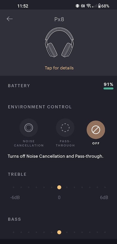 This cable lets you connect an analog source directly to the Px8’s USB-C port. Yes, it will playback sound but honestly, why would you? Like using DAC mode described above, Px8 will need to be powered on. The 3.5-mm jack is NOT activating a passive mode. Honestly, I’d be concerned for the safety of the headphone’s electronics if using an amplified analog signal. This ludicrous listening mode takes an already questionable analog source signal through the USB-C port's analog-to-digital converter before moving over to the Px8’s DAC to playback at 24/48 audio. It’s a messy process and I lack the imagination to see its use case. Perhaps it’s just a way for someone to let you hear a song from an unpaired device. I’d avoid using Px8 this way.