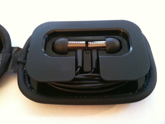 The Aurvana 2's are indeed well built. They have a solid metal plug and casings, with a gun-metal finish that looks great. The drivers themselves are housed in machined tubes with a mesh acoustic grille design that is very sharp looking, and feels very substantial yet not too heavy. Included is a hardshell carrying case about the size of a small flip-phone or beeper (wow, did I just show my age or what?) with a built-in cord wrap, a cleaning tool, airline adapter, and three sizes of silicone tips.