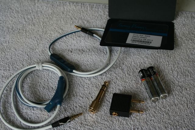 The Series 3000 Wangs came with a number of accessories. First, they sport a removable 1.2 meter, tangle-resistant cord. There is a 1/4" adapter for use with full-sized headphone jacks (like on your receiver). The smaller 3.5mm jack has a diminutive surround so you won't have problems attaching it to your phone or portable MP3 player even if you have one of the more restrictive cases.