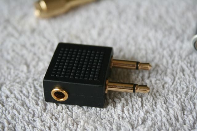 The second, and probably the coolest, feature on the cord was the integrated "DuoJack" - a built in, in-line headphone splitter. While I'm sure there are many out there that look at this feature and think they'll never use it, I am absolutely in love with it. On long flights (or even just around the house), I'm often wanting to share what I'm listening to/watching with someone else. This relieves me of the hassle of trying to find a splitter or having to listen to something in series rather than at the same time. When you add in the conversion plug for airplanes and you've got the sort of convenience that makes travel much less irksome.