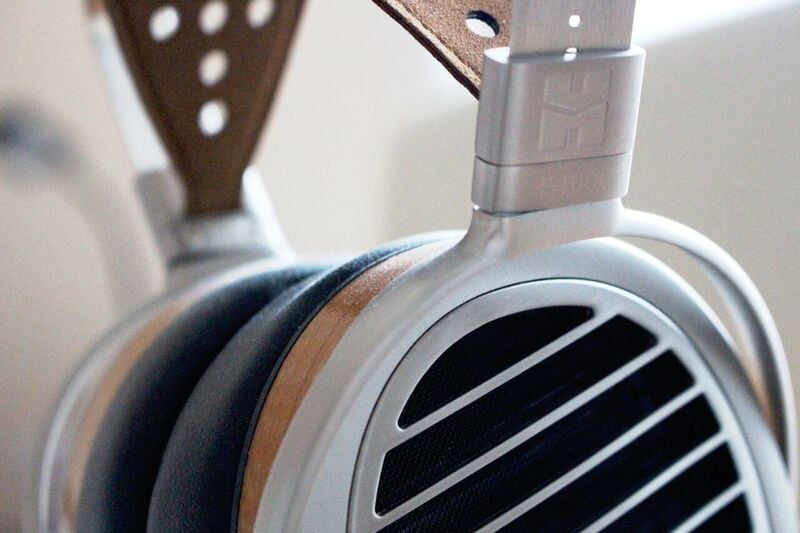With the well-structured headband and use of light wood trim, the HE-1000 V2 is a surprisingly comfortable headphone for its size and 420 gram weight. It combines pleather earpads with calfskin head-support to allow optimal comfort during long listening sessions. The patterned holes on the headband also allow some room for breathability which is especially useful during the hotter seasons to avoid excessive heat entrapment.