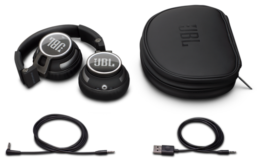The Synchros S400BT headphones fold up and come with a carrying case, a USB cable for charging, and a 3.5mm cable for connecting directly to your device if your batteries die. One of the more unique features with the Synchros S400BT headphone is that they light up in response to your touch. According to JBL: