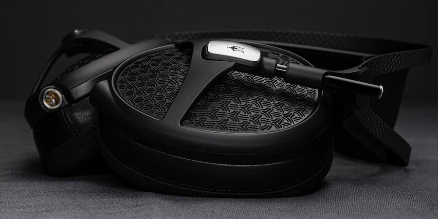 The lightweight Rinaro Isoplanar Diaphragm weighs only 0.16 grams, while covering a surface area of 4650 square millimeters (7.2 square inches). An improved frame made of fiberglass-infused ABS also contributes to lower weight, allowing for longer listening sessions without discomfort. Meze lists the weight of the Empyrean II at 385 grams, down from the 430-gram original. The frame of the Empyrean II is crafted with precision CNC milling, and features a matte black finish with silver accents. The headband appears to be made from the same carbon fiber used in the original, but the redesigned grille is completely new, drawing inspiration from “bold and timeless art deco patterns,” according to Meze. (The precision with which Meze’s aluminum grilles are CNC-milled is unlike anything I’ve seen in any other headphone — or any audio product, for that matter.)