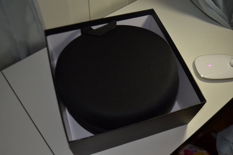 The M1060Cs came packaged in a hard, black card stock box that has a glossy Monoprice Monolith logo imprinted into it. Pretty nifty. The M1060Cs were then enclosed in a zippered case, which was wrapped in a material similar to a speaker grill screen. Inside the case were the M1060Cs nestled inside a shaped insert customized to fit the headphones. The thinner piece of the case, once opened, contained a netted material attached halfway up the flap that held a “Thank you” card with customer support information.