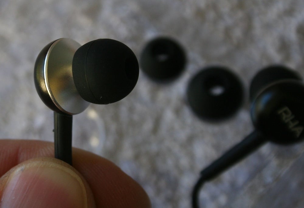 The RHA MA350s weight gives them a huge advantage over most of the competition. Being so light, they don't pull free nearly as easily as the rest. Like many earbud options out there, the MA350s use silicone tips. They offer small, medium, and large options. I've seen smaller (and larger) tips offered by other companies. They've also forgone the inclusion of the foam tip for maximum sound isolation - an odd exclusion considering RHA bills the MA350s as "Noise isolating aluminum earphones."